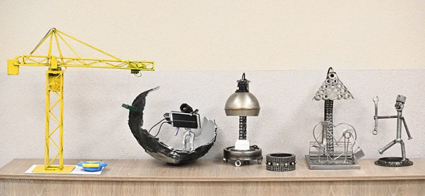 Второе место по праву заняли работы: Куцыкова Сергея Алексеевича (УПК ООО «ЭФКО Слобода») действующий макет башенного крана, кран может перемещать груз вертикально, управление с пульта. Кран изготавливался совместно с сыном из деталей его игрушек. Также второе место присуждено настольной лампе, в основании которой установлен массивный подшипник, что дает возможность поворачивать лампу в удобное положение. Лампа полностью изготовлена из металлолома. Автор этого изделия победитель профессионального конкурса Векшин Александр Станиславович (СГМ ЦФСЖ ООО «Евдаково»). Премия за вторые места составила по 6 000 рублей.