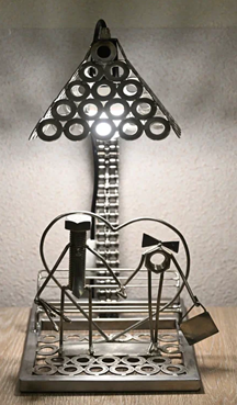 Кроме этой «печальной работы» первое место за эстетичность и жизнелюбие получил светильник «Мгновения любви», идея которого пришла Скоробогатько Александру (СГМ ЦФСЖ ООО «ЭПИ») при прогулке в парке и воспоминании о встречах со своей будущей женой. Изящный настольный светильник, сделанный из большого количества шайб и болтик с гаечкой на прогулке. Премия за каждую поделку составила по 8 000 руб.