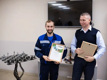 Вот наши призеры! В номинации «Творческая работа» приняли участие шесть конкурсантов. Работы просто потрясли членов жюри! Общим голосованием принято решение о присуждении двух первых мест за работы: «Рыцарь на страже безопасности» Хрипушина Станислава Юрьевича ООО «ЭФКО Косметик» и за набор «Шахматы слесарные» Колядинцева Алексея Василевича ООО «ЦОР ЭФКО». Оба мастера получат премии по 8 000 рублей. Жюри никак не могло разделить эти работы… Уровень выполнения и эстетичность работ не позволили разделить их на первое и второе места.