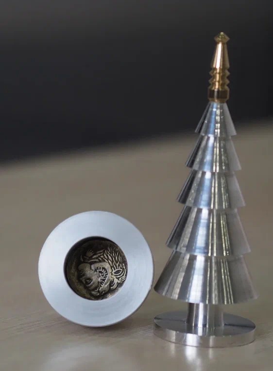 В номинации «Творческая работа» приняли участие только два участника конкурса. Отличились самые молодые представители цеха. Члены жюри оценили обе представленные творческие работы. Дмитрий Алексеевич Кожанов токарь 4 разряда, представил на конкурс придуманную им самим «Головоломку» - 1 место и премия 8 000 рублей. Павел Владимирович Иевлев, токарь 3 разряда, представил сувенир «Елочка» - 2 место и премия 6 000 рублей.