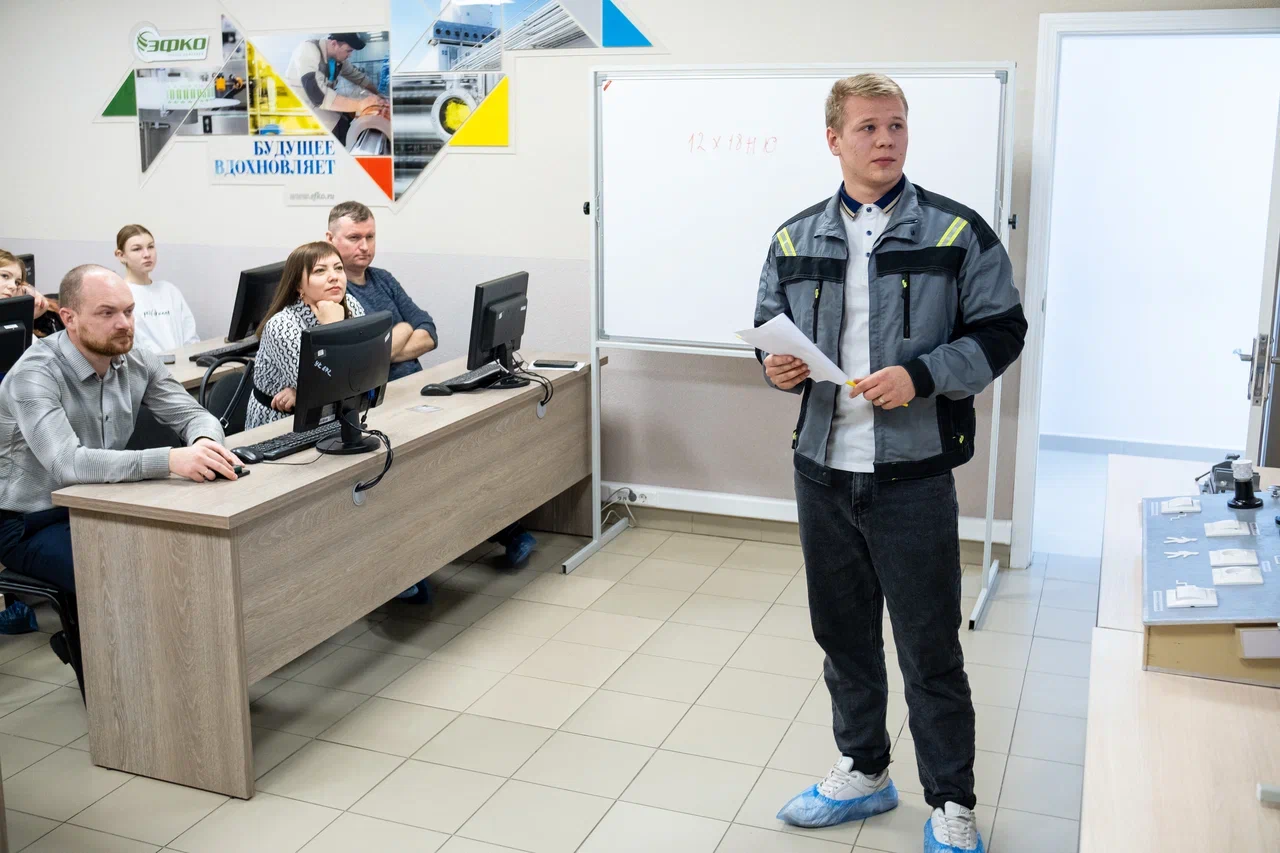 26 декабря состоялась защита мини-проектов, которые студенты специальности «Управление качеством продукции, процессов и услуг», «Монтаж, техническое обслуживание, эксплуатация и ремонт промышленного оборудования» и «Монтаж, техническое обслуживание и ремонт электронных приборов и устройств» старательно выполняли в течение нескольких недель под руководством опытных наставников ГК «ЭФКО». На базе АНО ДПО «Учебный центр профподготовки ЭФКО» обучающиеся знакомились с модификацией масел и жиров, подготовкой воды для пищевого производства, создавали электрические макеты и слесарные изделия. На защите мини-проекта представителю от команды нужно было доказать актуальность выбранной темы, рассказать об этапах работы и продемонстрировать результат своей деятельности.