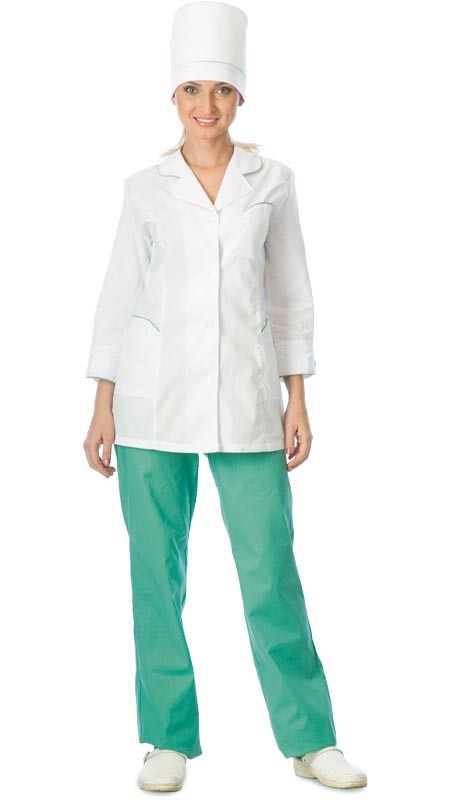• Находиться без спецодежды. На рисунке 2 мы можем увидеть, как должен выглядеть сотрудник лаборатории. Это комплект спецодежды, который состоит из брюк и куртки, изготовленных их хлопчатобумажной ткани, туфли, изготовленные из материала, устойчивого к моющим и дезинфицирующим средствам, головного убора – одноразовой шапочки или хлопчатобумажного колпачка. Волосы сотрудников должны быть убраны под головной убор.
